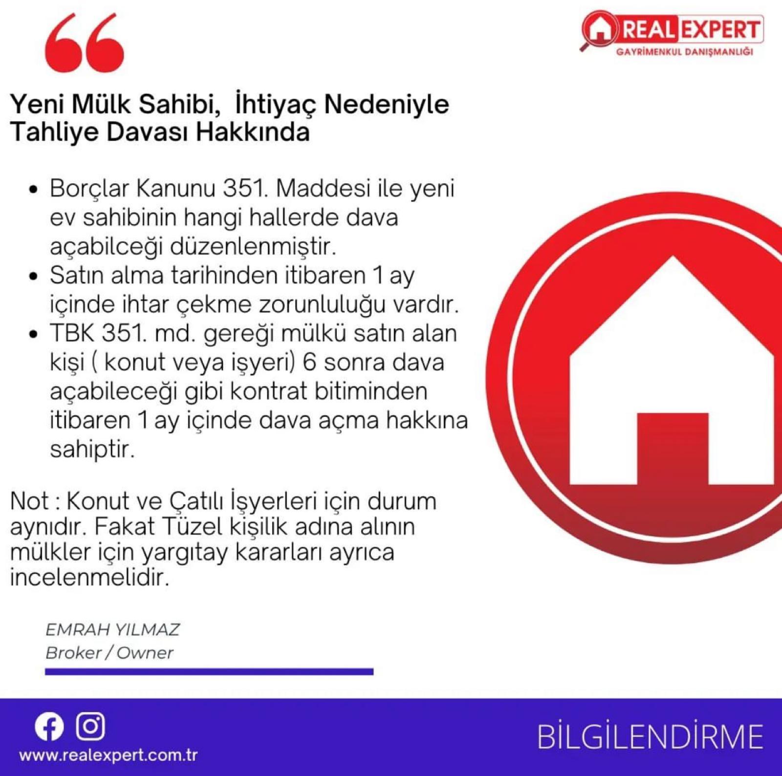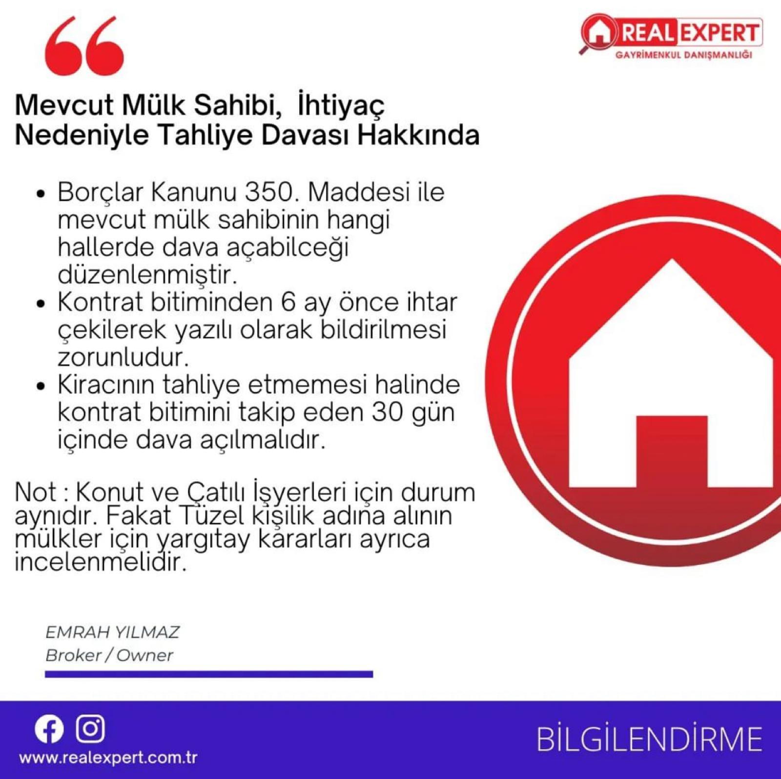 MEVCUT MÜLK SAHİBİ İHTİYAÇ NEDENİYLE TAHLİYE